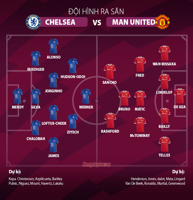 Thay thế vị trí của anh trên hàng công là Rashford. Hỗ trợ cho Rashford là Sancho và Bruno Fernandes.