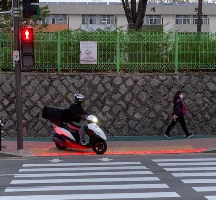 2. Hàn Quốc đặt đèn giao thông trên mặt đất để những người đang nhìn vào điện thoại vẫn có thể nhìn thấy đèn giao thông.