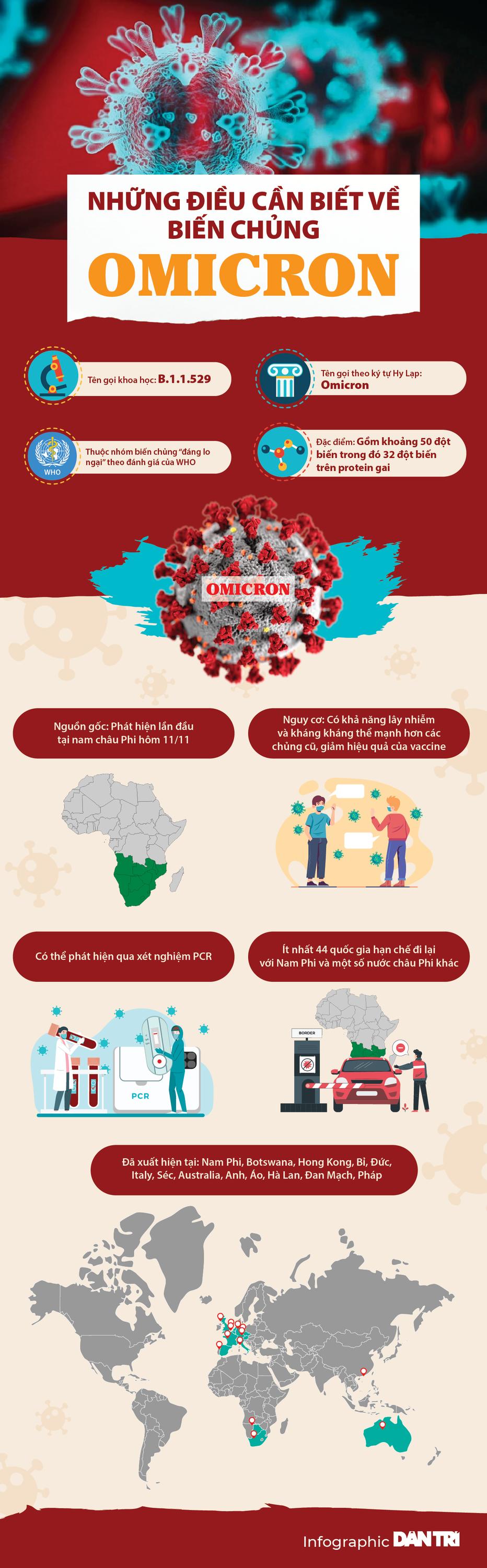 Ngay cả khi các nhà khoa học bắt đầu nghiên cứu kỹ lưỡng biến chủng mới, các quốc gia trên thế giới đã nhanh chóng áp lệnh hạn chế việc đi lại đối với các quốc gia ở phía nam châu Phi, nơi biến chủng Omicron lần đầu tiên xuất hiện tại Botswana và Nam Phi. Bất chấp những hạn chế này, biến chủng mới đã lan tới hàng loạt quốc gia châu Âu, trong đó có Áo, Bỉ, Séc, Đan Mạch, Hà Lan, Đức, Bồ Đào Nha, Tây Ban Nha, Anh, Italy. Ngoài ra, các ca mắc biến chủng Omicron còn được tìm thấy ở Hong Kong, Israel, Canada.