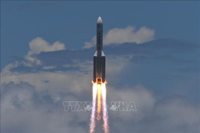 Tên lửa đẩy Trường Chinh-5 mang theo tàu thăm dò Thiên Vấn-1 rời bệ phóng tại Trung tâm Vũ trụ Văn Xương ở tỉnh Hải Nam, Trung Quốc. Ảnh minh họa: AFP/TTXVN