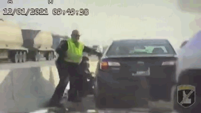 Được biết, khi vụ va chạm xảy ra, chiếc xe tuần tra của cảnh sát đang dừng ngay phía sau chiếc xe bị thủng lốp và có bật đèn khẩn cấp.