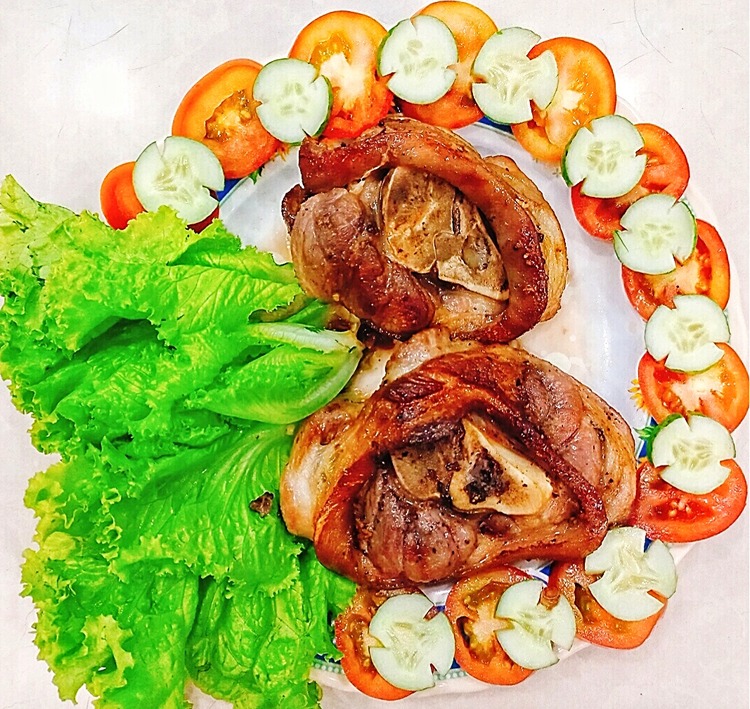 Thành phẩm: Giò heo được chiên vàng đều, giòn tan, đẹp mắt và toả mùi thơm đặc trưng cùng nước mắm tỏi ớt. Có thể trang trí thêm dưa leo, cà chua xà lách để ăn kèm cho đỡ ngán.