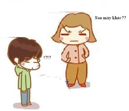 * Nghe xong, cậu con trai òa khóc. Bà mẹ ngạc nhiên hỏi :