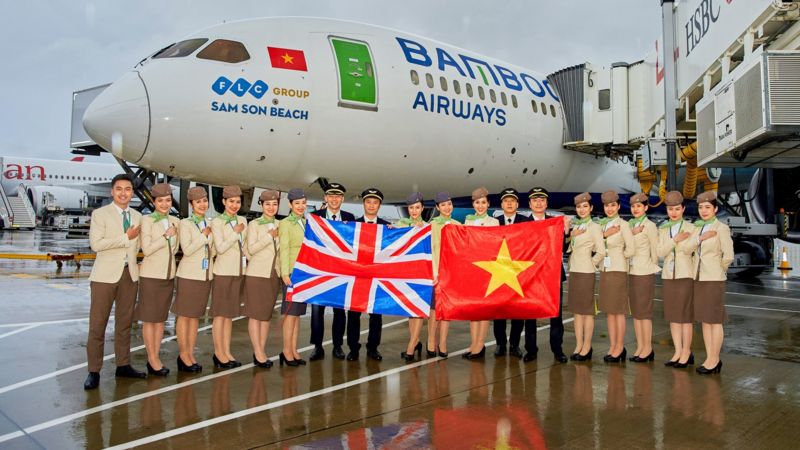 Máy bay của Bamboo Airways tại sân bay Heathrow. Nhà văn Trần Quốc Quân cho rằng cả Vietnam Airlines và Bamboo Airlines đều 'chặt chém' hành khách nhân đại dịch Covid