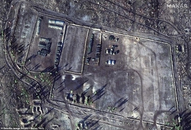 Theo Daily Mail, các bức ảnh mới được công bố cho thấy ít nhất 7 tiểu đoàn binh sĩ Nga đồn trú ở 3 trại lính, đóng quân gần Yelnya và Pogonovo, cách biên giới Ukraine từ 160 đến 240km. Giới phân tích cho biết lực lượng này mới tới hạ trại vào tháng trước.