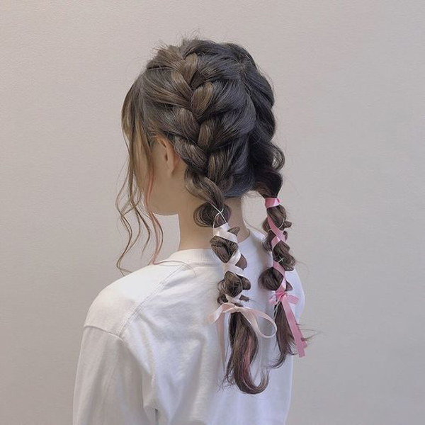 Kết hợp tết dây ruy băng cùng tóc giúp mái tóc thêm nổi và duyên dáng hơn.