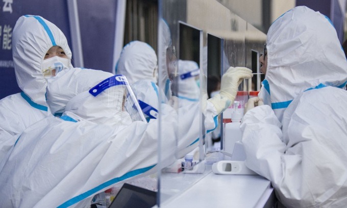 Người dân được lấy mẫu xét nghiệm tại thành phố Nam Kinh, Trung Quốc, hôm 8/12. Ảnh: AFP.