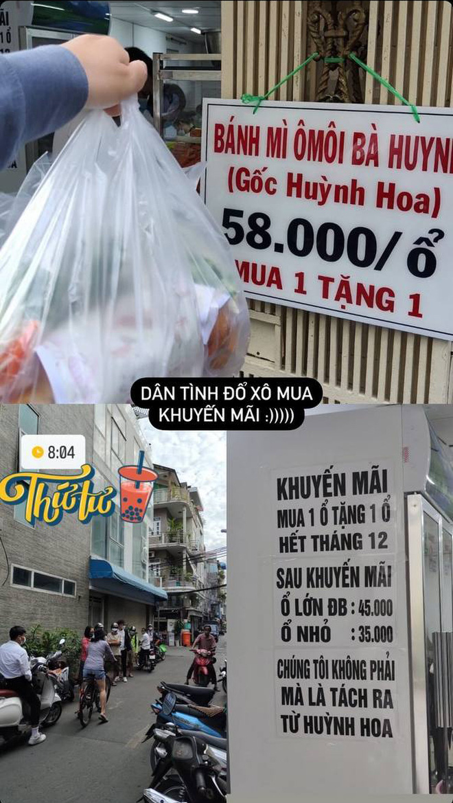 Một thương hiệu bánh mì tại Sài Gòn bất ngờ gây bão với chương trình khuyến mại mua 1 tặng 1. Thu hút cực đông khách tới xếp hàng chờ mua. Điều đáng nói, thương hiệu bánh mì này còn treo biển quảng cáo là tách ra từ thương hiệu nổi tiếng Huỳnh Hoa với nội dung khá "drama" nên càng thu hút người xem.