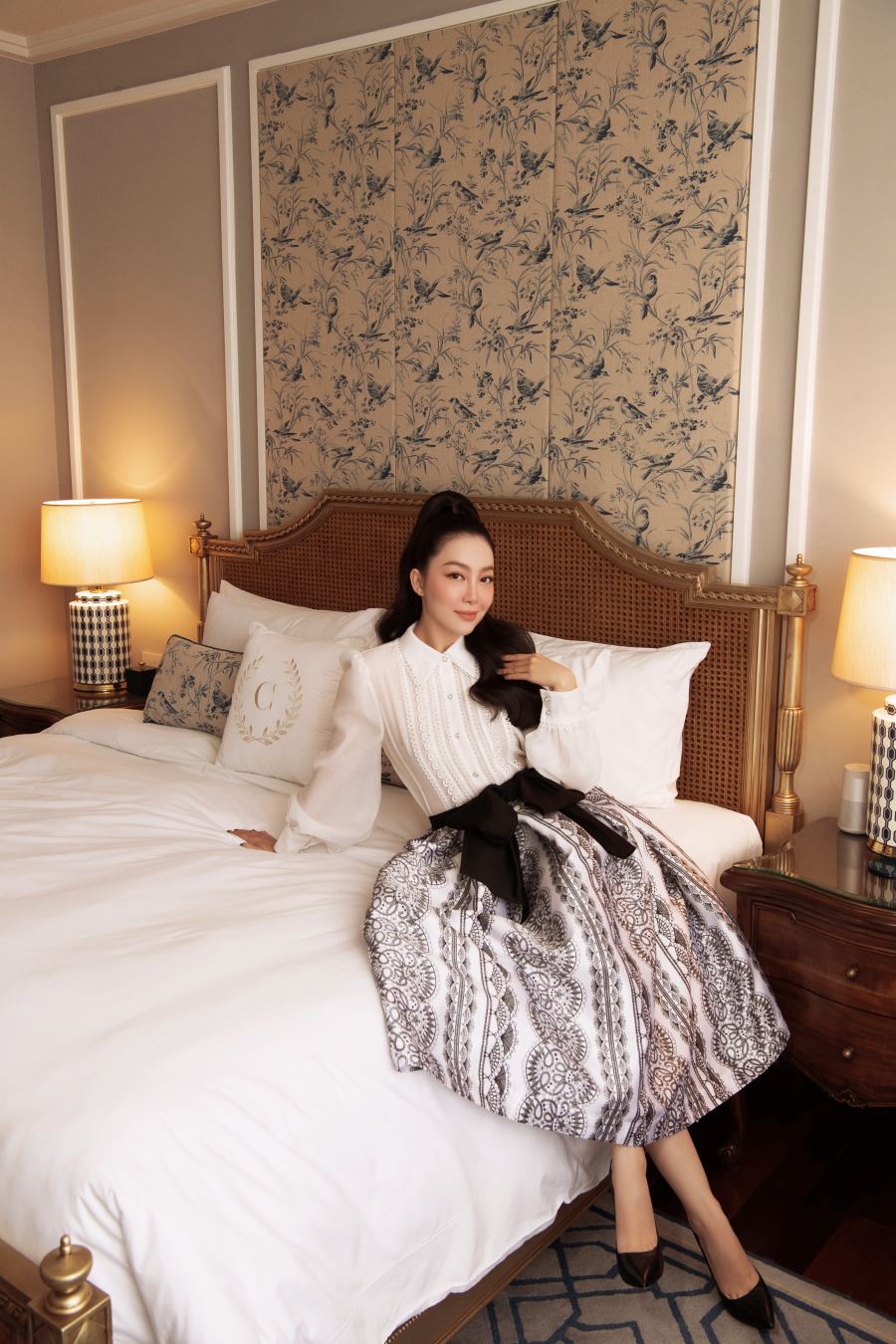 Linh Nga sang trọng với cách kết hợp trang phục cổ điển, tôn vinh thiết kế từ chất liệu ren.
