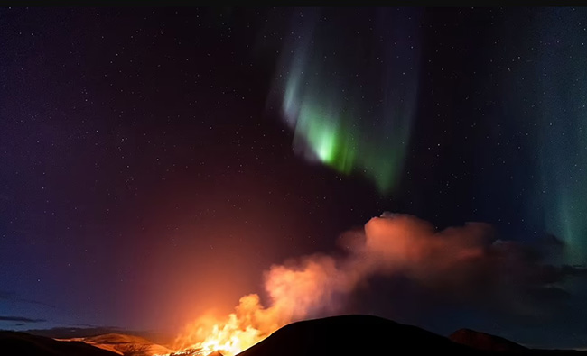 15. Hình ảnh tuyệt vời về cực quang phía trên núi lửa Geldingadalir ở Iceland này được chụp bởi Jeroen Van Nieuwenhove, một người cực kỳ nổi tiếng trong giới nhiếp ảnh gia ở Iceland.