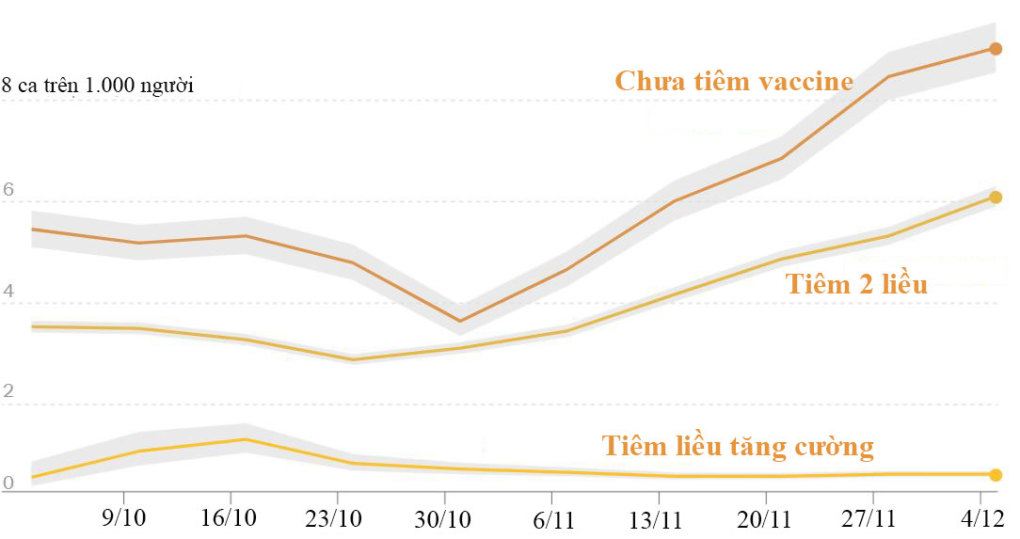 Nhưng từ đó đến nay, bức tranh dịch bệnh xấu đi nhanh chóng. Khả năng miễn dịch từ những đợt tiêm vaccine đầu tiên có thể đang suy yếu. Dữ liệu do Trung tâm Kiểm soát và Phòng ngừa Dịch bệnh Mỹ ghi nhận gần đây từ các viện dưỡng lão cho thấy tỷ lệ ca nhiễm ở những người đã tiêm chủng đầy đủ nhưng chưa tiêm tăng cường đang tăng mạnh.