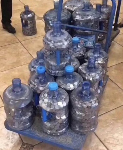 Một anh chàng đi mua căn hộ là một người bán rong với các mặt hàng như cá, đậu phụ, giá đỗ. 20 bình tiền xu các loại là toàn bộ tiền anh tiết kiệm trong quá trình buôn bán của mình. Để chứa hết số tiền này, anh đã tái sử dụng các bình nước để đựng tiền.
