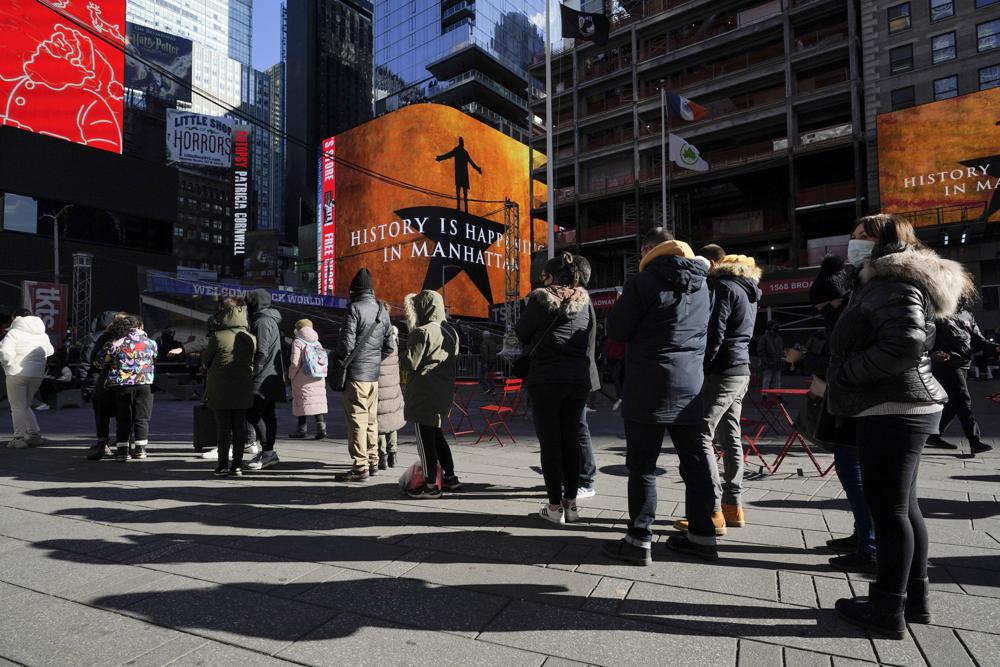 Tại thành phố New York, số bệnh nhân COVID-19 tăng vọt cũng đã khiến các buổi biểu diễn ở Broadway bị huỷ bỏ. Nhiều trung tâm xét nghiệm đã mọc lên với hàng dài người xếp hàng chờ đợi. Thị trưởng Bill de Blasio cho biết trong tuần này, ông sẽ đưa ra quyết định xem có tổ chức tiệc đêm Giao thừa nổi tiếng của thành phố ở Quảng trường Thời đại hay không.