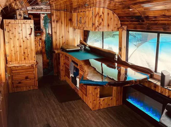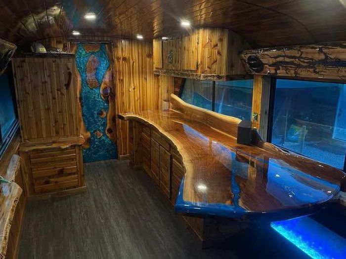 Độ xe buýt thành motorhome không phải chuyện mới, nhưng rất ít sản phẩm 'handmade' sử dụng gỗ cho toàn bộ nội thất như Clint Lewing.