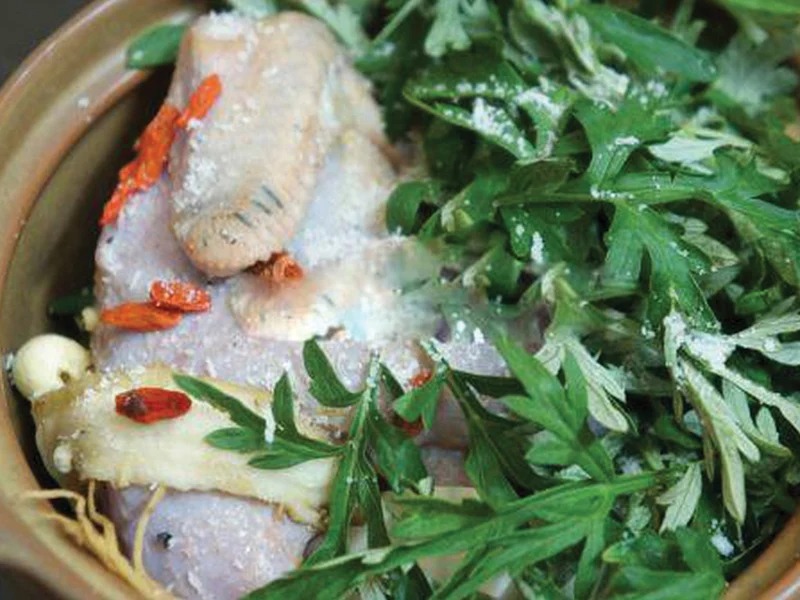 - Ngải cứu, lá chanh, sả rửa sạch để ráo.
