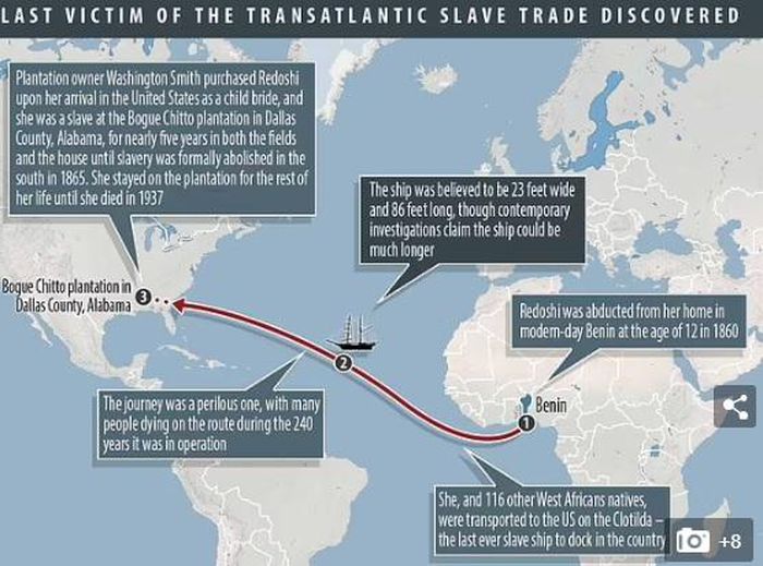 Trong chuyến đi cuối cùng, con tàu Clotilda bị giới cầm quyền phát hiện vận chuyển nô lệ từ nước khác tới Mỹ.