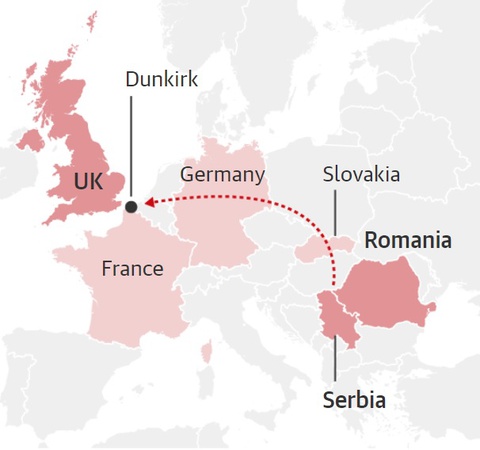 Người lao động Việt nhập cảnh vào Serbia hoặc Romania sau đó được vận chuyển trái phép đến các nước châu Âu khác. Ảnh: Guardian.
