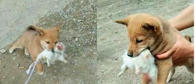 Thế nhưng sau khi nhìn rõ đó là gì, người này không khỏi sửng sốt. Bởi chú chó nhà anh đã bắt được một con chuột màu trắng tương đối lớn.