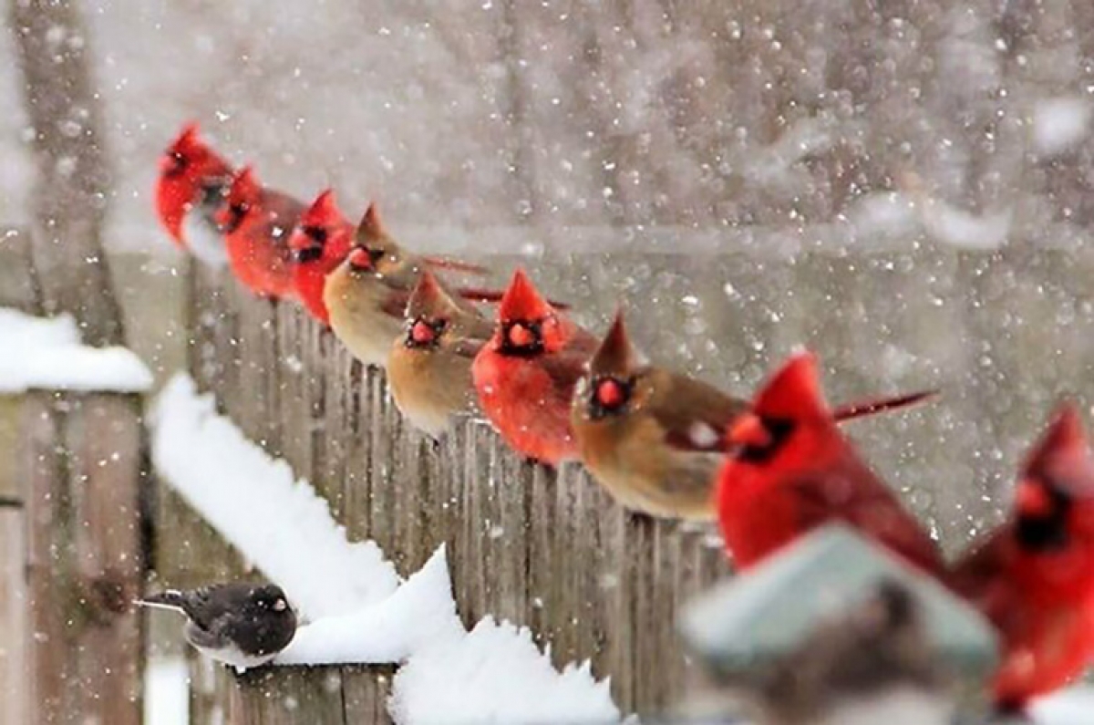 Vẻ đẹp rực rỡ của những chú chim hồng y giáo chủ giữa ngày đông giá rét.