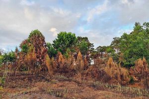 Tại hiện trường, nhiều cây thông non, có chiều cao từ 0,5-3m đã bị cháy rụi, chết đứng. Nhiều cây thông bị lửa đốt thành than và không có dấu hiệu sẽ phục hồi. Đáng chú ý hơn, nhiều khoảnh thông một số vị trí tiếp giáp đường Hồ Chí Minh, hoặc có vị trí "đắc địa’’ bị thiêu rụi.