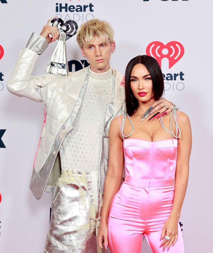 Megan Fox và Machine Gun Kelly là bộ đôi quyền lực trên thảm đỏ, Insider nhận định. Trong khi nữ diễn viên 35 tuổi thường gây chú ý với phong cách gợi cảm, bạn trai trẻ tuổi của cô lại trông nổi bật với lối phối đồ bắt mắt. Anh thường được các tạp chí xếp vào danh sách sao nam ăn mặc đẹp nhất. Chất pop punk từ những năm 2000 được tái hiện rõ thông qua các bộ quần áo sequin, ngọc trai, ánh neon và nhiều loại họa tiết khác nhau của Kelly. Ảnh: Kevin Mazur.