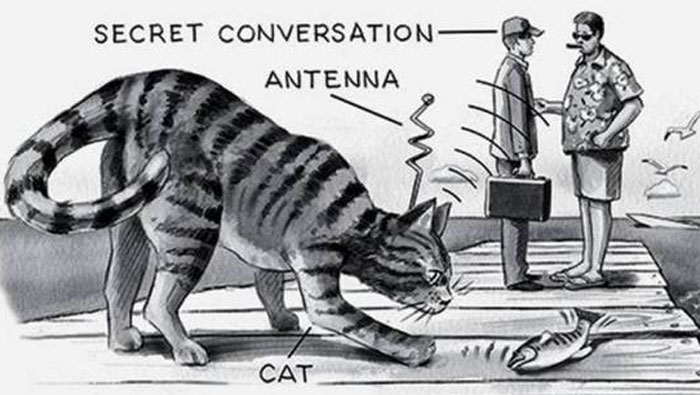 Vào những năm 60, CIA của Mỹ đã dành hàng tháng và hàng chục triệu USD để cài đặt ăng-ten vào cơ thể một con mèo và sau đó huấn luyện nó ngồi gần các mục tiêu để nghe lén các cuộc trò chuyện riêng tư của họ. Vào ngày chạy thử nghiệm chính thức đầu tiên, họ thả con mèo ra. Nó đi lang thang trên đường và nhanh chóng bị một chiếc taxi tông phải.