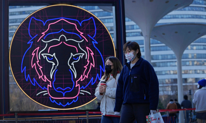 Hai người đeo khẩu trang đi trên khu phố ở thủ đô Bắc Kinh, Trung Quốc. Ảnh: AP.