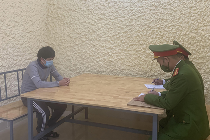 Dũng tại cơ quan công an. Ảnh: Diệu Thúy
