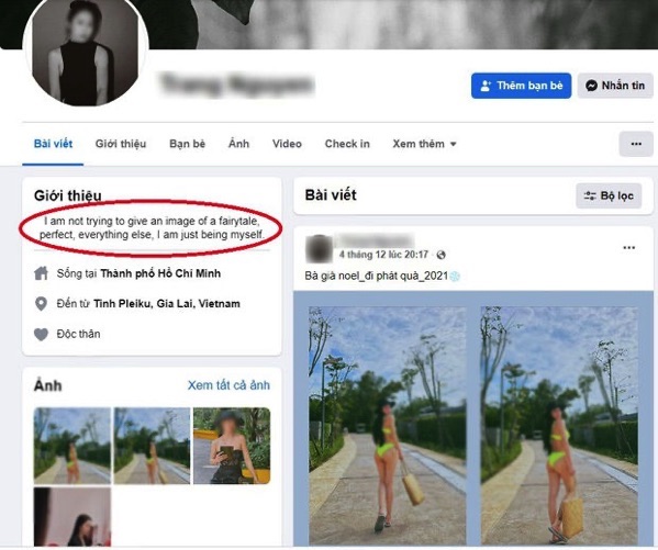 Qua vụ dì ghẻ hành hạ con chồng tới chết, dân mạng đã nhanh chóng tìm ra facebook của dì ghẻ. Trái ngược với những hành động "bạo lực", "tàn ác" ngoài đời thực, trên trang cá nhân được cho là của người dì ghẻ lại xây dựng hình ảnh bóng bẩy, hoàn hảo, tỏ vẻ yêu thương con riêng của chồng.