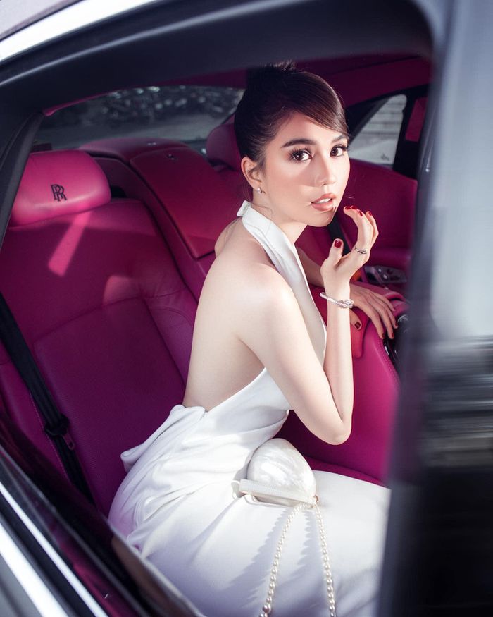 Ngọc Trinh đẹp kiêu sa, không kém phần sexy với mẫu váy xếp tầng, để lộ lưng trần và lấp ló ṿng 1.