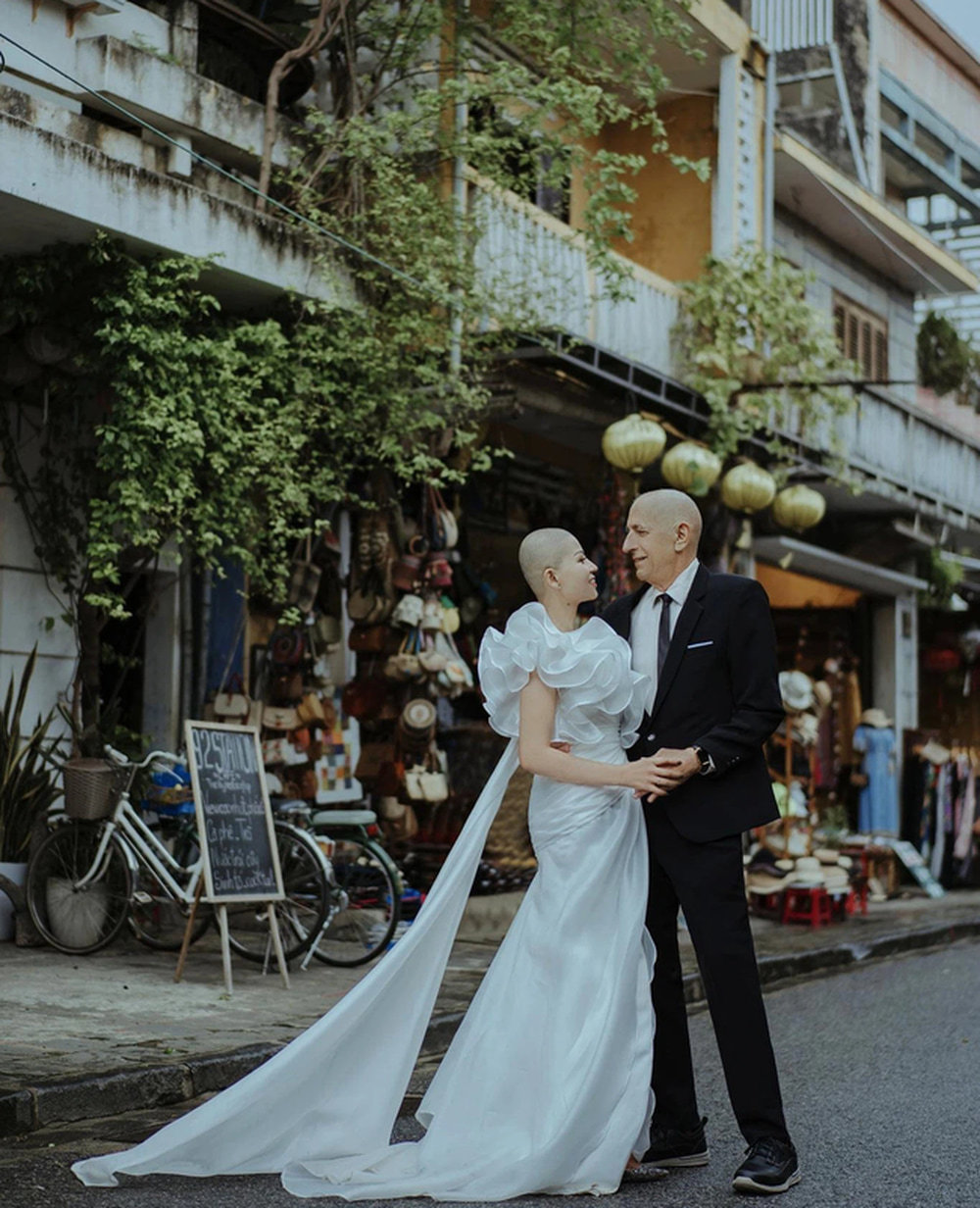 Tình yêu của chị lớn tới nỗi, thời điểm đăng kí kết hôn và chụp đám cưới, chị quyết định cắt tóc để đồng hành với người chồng. Cũng từ đây, bộ ảnh cưới “cô dâu cắt sạch mái tóc và chồng Tây” đã khiến 2 người nổi tiếng, đưa câu chuyện tình yêu cổ tích viral mạng xã hội.
