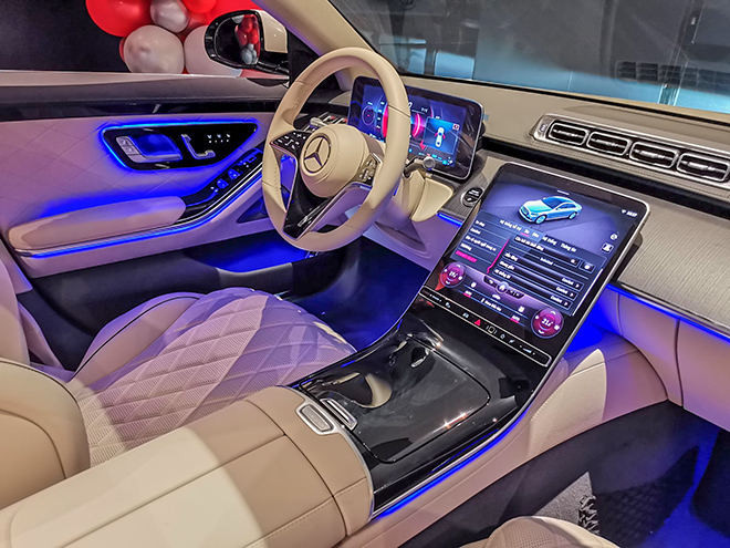Vô-lăng ba chấu thiết kế hoàn toàn mới, bọc da tích hợp nhiều phím bấm chức năng. Hệ thống giải trí sử dụng màn hình giải trí MBUX với kích thước lên đến 12,8 inch. Hệ thống này có thể điều khiển bằng cử chỉ, giọng nói, nhận diện gương mặt và bảo mật vân tay. Kích thước lớn hơn giúp khoang cabin xe rộng rãi và thoải mái hơn. Trên cả Mercedes S450, hệ thống giải trí cao cấp MBUX High-end dành cho hàng ghế sau bao gồm hai màn hình cảm ứng 11,6 inch đặt sau lưng ghế trước.