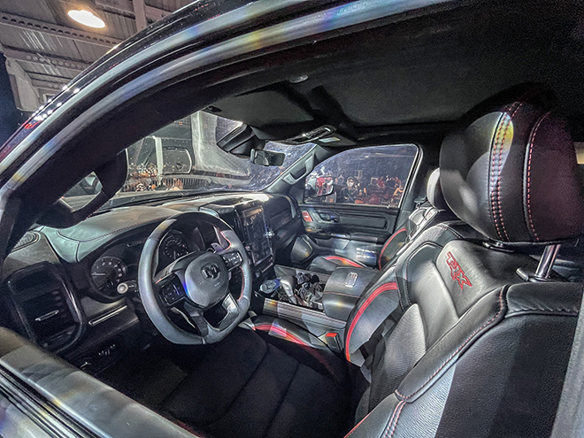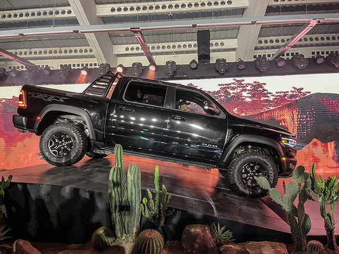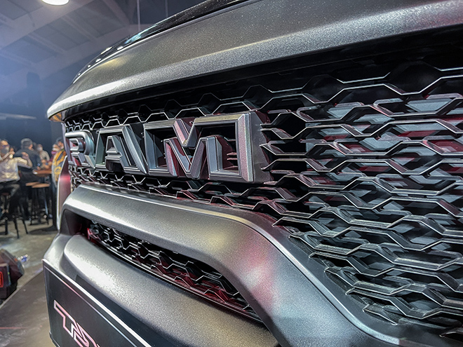 Trong khuôn khổ sự kiện ra mắt showroom mới, mẫu xe bán tải cỡ lớn RAM 1500 TRX chính hãng đầu tiên đã được giới thiệu và công bố mức giá bán lên đến 7,9 tỷ đồng. Ngoại thất của RAM TRX thiết kế hầm hố, mạnh mẽ, nam tính đậm chất xe Mỹ, nội thất hiện đại và tiện nghi với bộ ghế sang trọng, thể thao, một số chi tiết được ốp carbon.