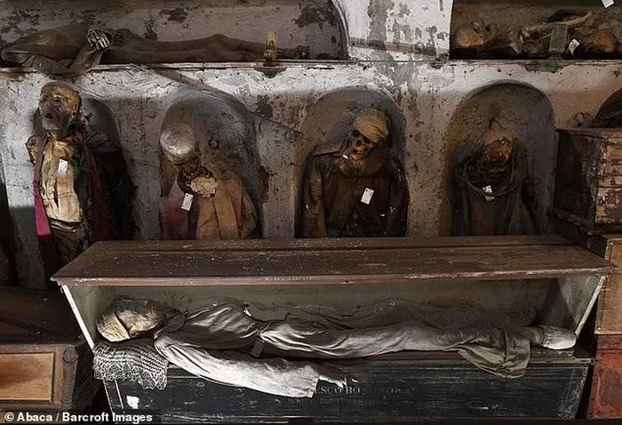 Theo Daily Mail, hầm mộ Capuchin nằm ở ở Sicily, miền nam nước Ý, nơi chứa hơn 1.280 bộ xương, trong đó có 163 xác ướp trẻ em. Hầm mộ vốn mở cửa cho công chúng tham quan và là nơi thu hút khách du lịch thích trải nghiệm cảm giác mạnh, ưa thích những thứ rùng rợn, đáng sợ.