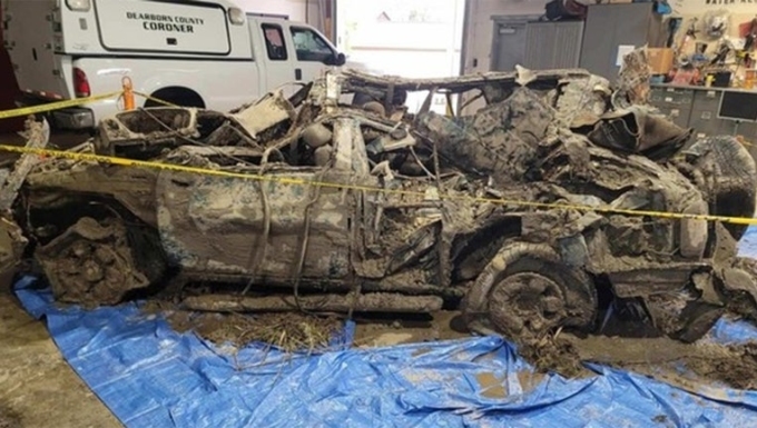 Chiếc xe được vớt dưới sông Ohio, bang Indiana, hồi tháng 10/2021. Ảnh: Cảnh sát Bang Indiana.