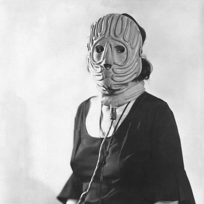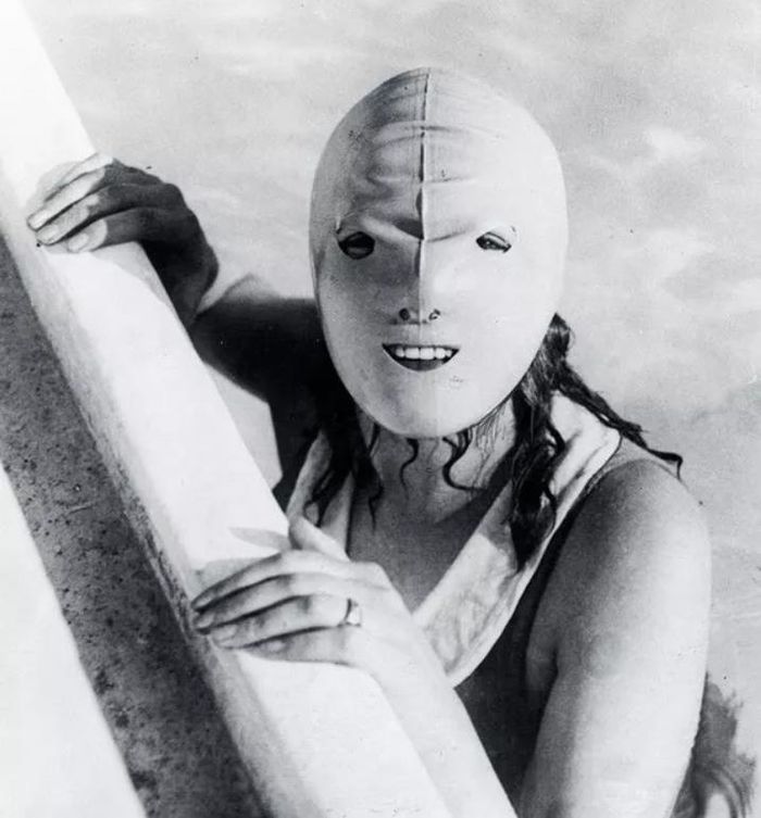 Bạn nghĩ rằng mặt nạ bằng đá trên kia đã đáng sợ? Còn chiếc khẩu trang có từ những năm 1920 này thì sao? Theo đó, chúng được phát minh ra để bảo vệ khuôn mặt của người dùng khỏi ánh nắng mặt trời.