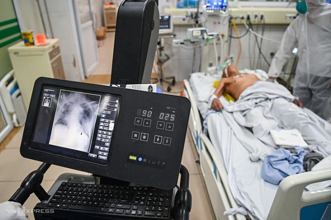 Một bệnh nhân nặng điều trị tại Bệnh viện Bệnh Nhiệt đới Trung ương, tháng 12/2021.