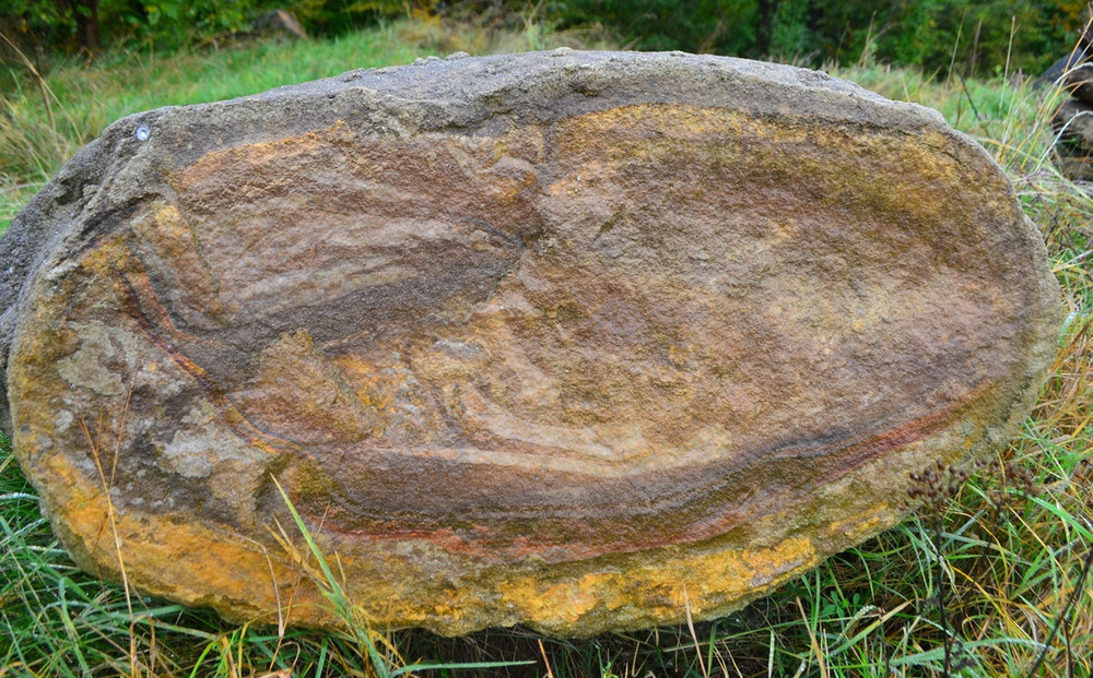 Có những vòng tròn giống vân gỗ bên trong đá. Một số chuyên gia phỏng đoán rằng "vật chất" của viên đá này hút nước nên sẽ phồng lên khi gặp nước, nhưng tại sao nó lại di chuyển và tại sao bên trong lại giống như vân gỗ thì vẫn chưa có câu trả lời chắc chắn.