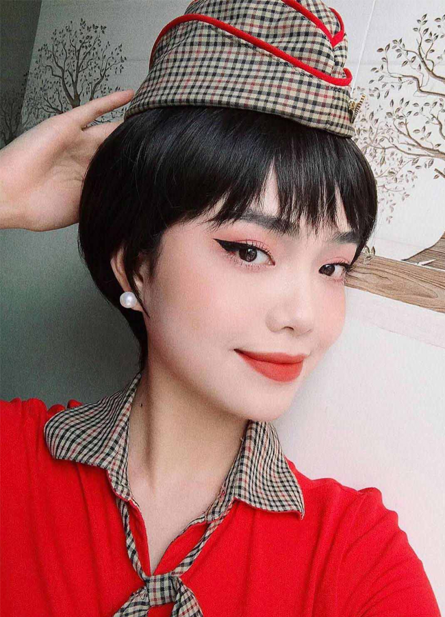 Khoác lên mình bộ đồng phục bay màu xanh, Kim My vẫn thu hút ánh nhìn người đối diện vì xinh đẹp, nền nã.
