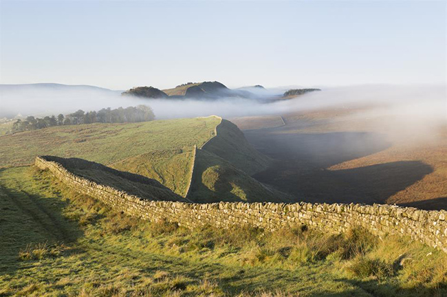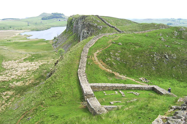 Hadrian’s Wall, Vương quốc Anh: Hadrian’s Wall kéo dài 117km trên chiều rộng của nước Anh và được xây dựng từ năm 122 đến 128 sau Công nguyên theo lệnh của hoàng đế La Mã Hadrian - ý định của ông là bảo vệ biên giới phía bắc của Đế chế La Mã khỏi cái gọi là "những kẻ man rợ" người Scotland.
