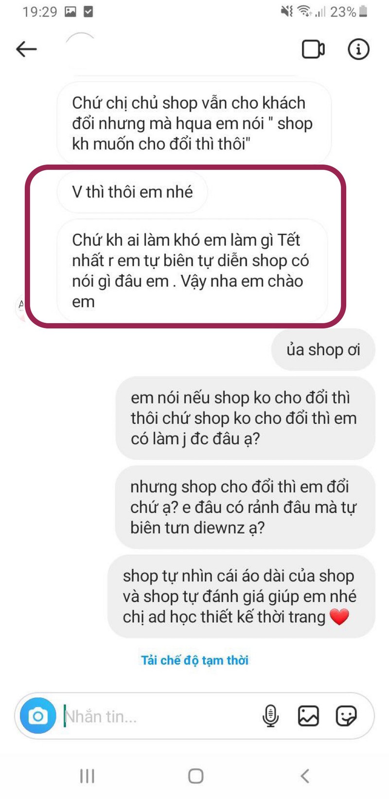 Sau một hồi cự cãi với chủ shop, cô gái bị ''bơ'' thẳng mặt