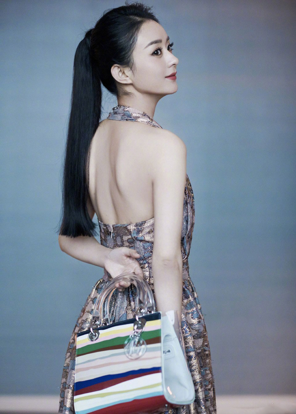 Triệu Lệ Dĩnh sang như phu nhân nhà tài phiệt với mẫu đầm Dior khoe dáng nhẹ nhàng. Kiểu tóc buộc cao giúp cô thêm phần trẻ trung, tôn lên đường nét thanh tú, hút mắt.