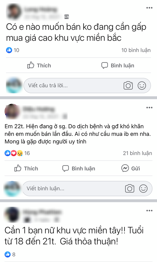 Những bài đăng tìm người mua/bán trinh tiết trong các group trên MXH