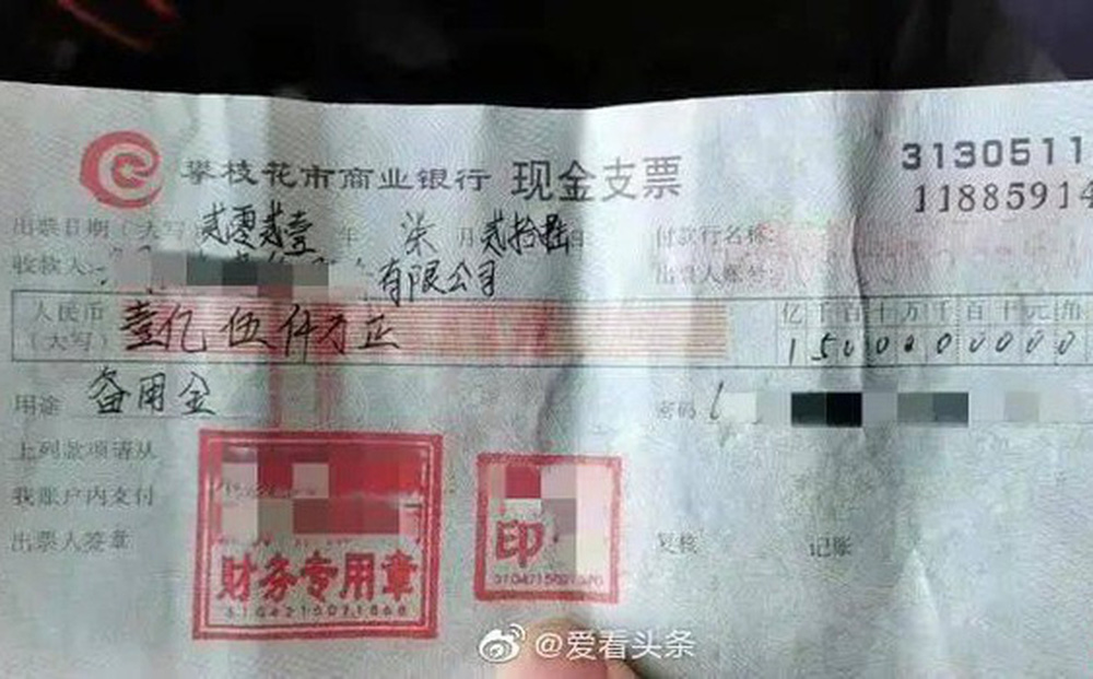 Báo giới Trung Quốc hôm 14/1 đưa tin cảnh sát huyện Mễ Dịch (tỉnh Tứ Xuyên) đã nhận được tin trình báo của một cụ bà về việc nhặt được tấm séc có số tiền cực “khủng”.
