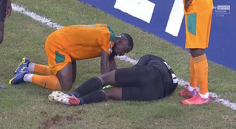 Sau đó, anh đã nằm sân đau đớn. Nhiều quan điểm cho rằng thủ môn này đã giả chấn thương.