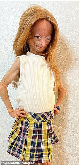 Cũng vào khoảng thời gian này, Adalia bắt đầu rụng tóc, các mạch máu nhỏ xuất hiện nhiều hơn, da cô bé cũng mỏng đi nhiều. Những người mắc phải căn bệnh này c̣n có nguy cơ gia tăng bệnh lùn do có một gen protein bất thường.