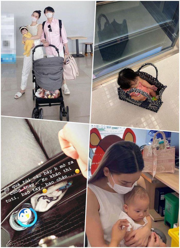 Những chiếc túi hiệu đắt đỏ, có giá thành từ vài chục đến cả trăm triệu của Hà Hồ, Đông Nhi, Đàm Thu Trang, Tú Anh... giờ đây cũng chỉ để đựng bình sữa, đồ dùng cho các nhóc tỳ khi ra ngoài.