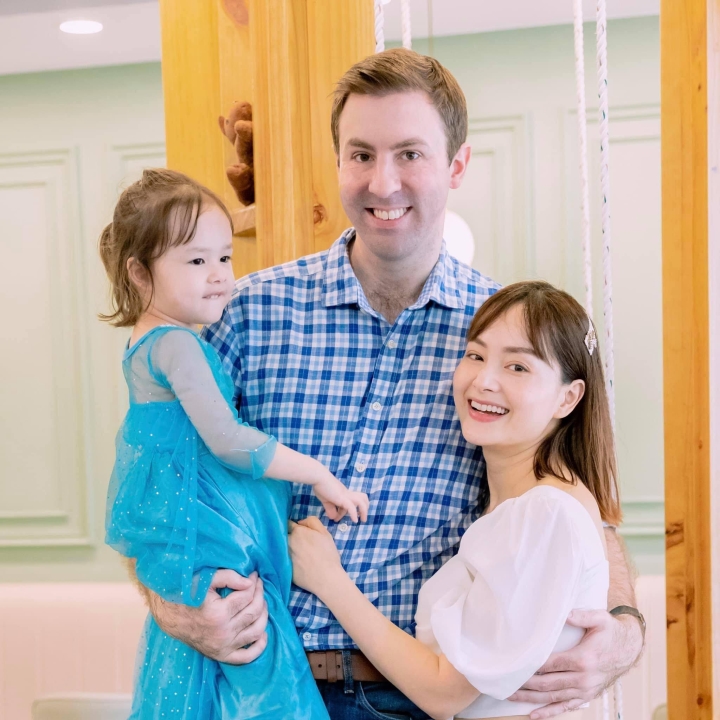 Nữ diễn viên Vbiz có cuộc sống hôn nhân viên mãn bên chồng Tây cao 2m, hạnh phúc khi được gia đình chồng quan tâm, đối xử tốt.