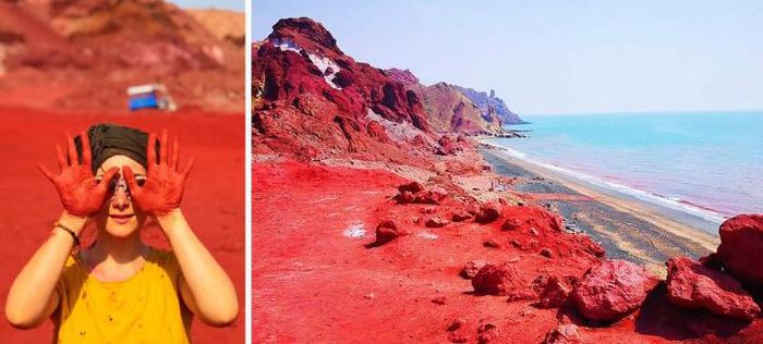 Nơi đây có vẻ đẹp khiến nhiều du khách phải kinh ngạc bởi nó sở hữu bãi biển màu đỏ ruby độc nhất vô nhị trên thế giới. Sau nhiều năm bỏ công sức, thời gian nghiên cứu, cuối cùng các nhà khoa học đã tìm ra tác nhân khiến bãi biển trên đảo Hormuz ngập trong sắc đỏ lừ như biển máu. Tất cả đều do Gelack bắt nguồn từ ngọn núi giàu đất oxit đỏ gần bờ biển.