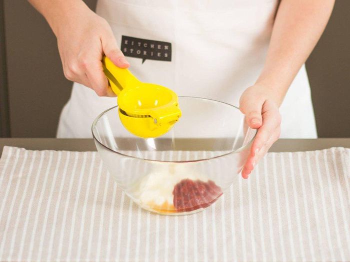 Chuẩn bị cái bát lớn, cho creme fraiche, tương cà, rượu cognac, nước sốt cay, đường, muối và tiêu vào trộn đều. Vắt thêm nước cốt chanh, khuấy đều.